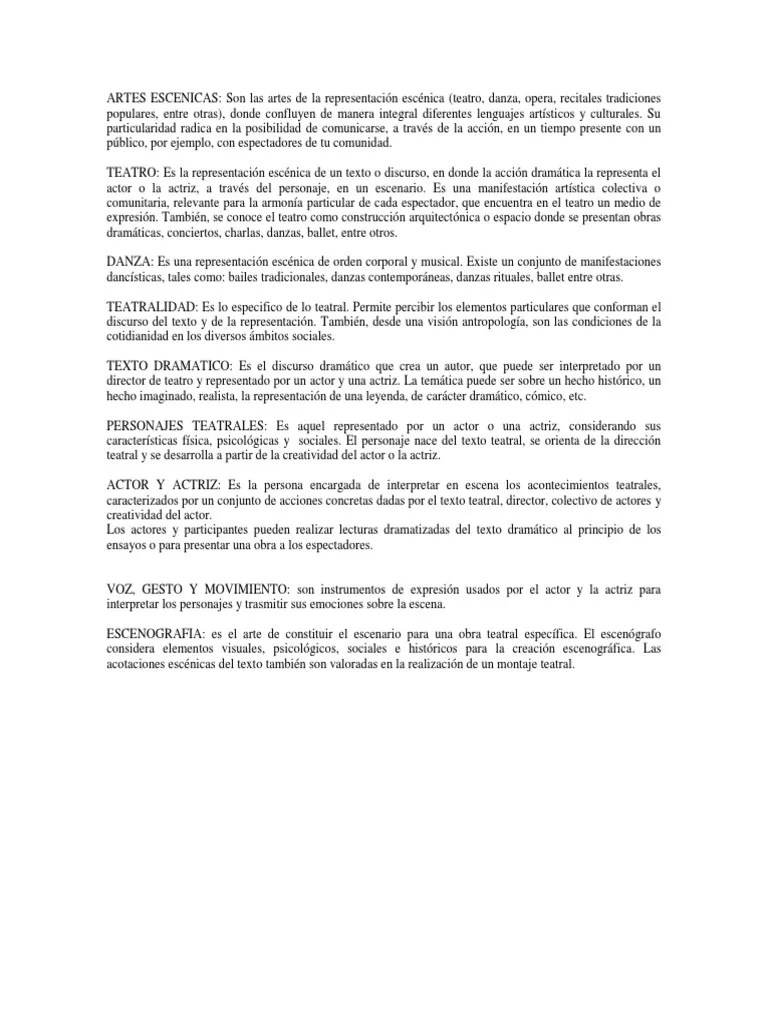 Otro ejemplo sería la descripción de un producto alimenticio, como un refresco embotellado, para publicitarlo y ponerlo en el mercado.. Artes escénicas.creaciones donde el ejecutante es parte de la obra.. 1 aunque son fundamentalmente tres disciplinas artísticas las que son representadas en las artes escénicas (teatro, danza y música) estas a su vez se subdividen o se conjugan en otras tantas, como por ejemplo la ópera, la zarzuela, el teatro musical, el performance, el cabaret.